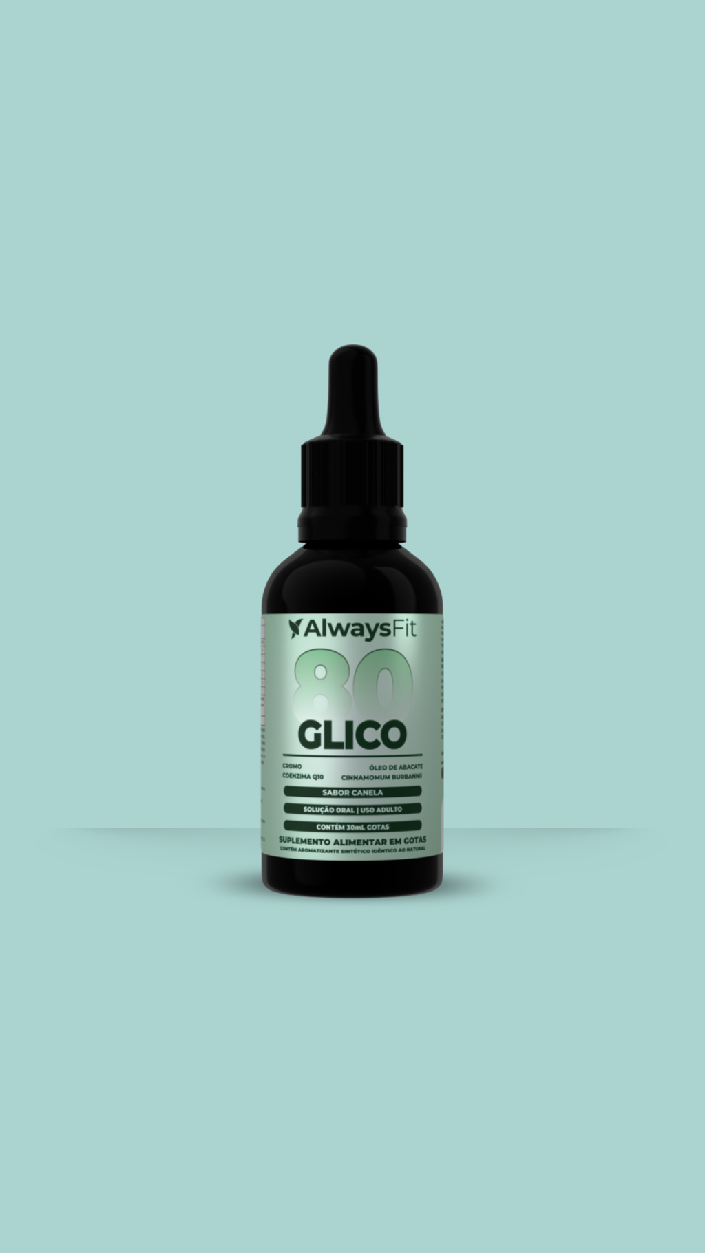 Glico80® é um suplemento alimentar desenvolvido para adultos a partir de 19 anos, com fórmula líquida sublingual que combina Coenzima Q10, Cromo (picolinato), extrato de Canela (Cinnamomum burmanii) e Óleo de Abacate. Uma solução prática e de rápida absorção para complementar a rotina alimentar com nutrientes selecionados.