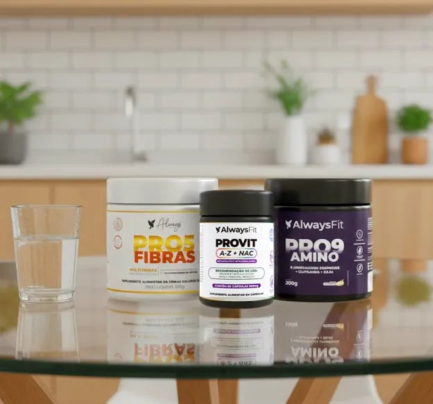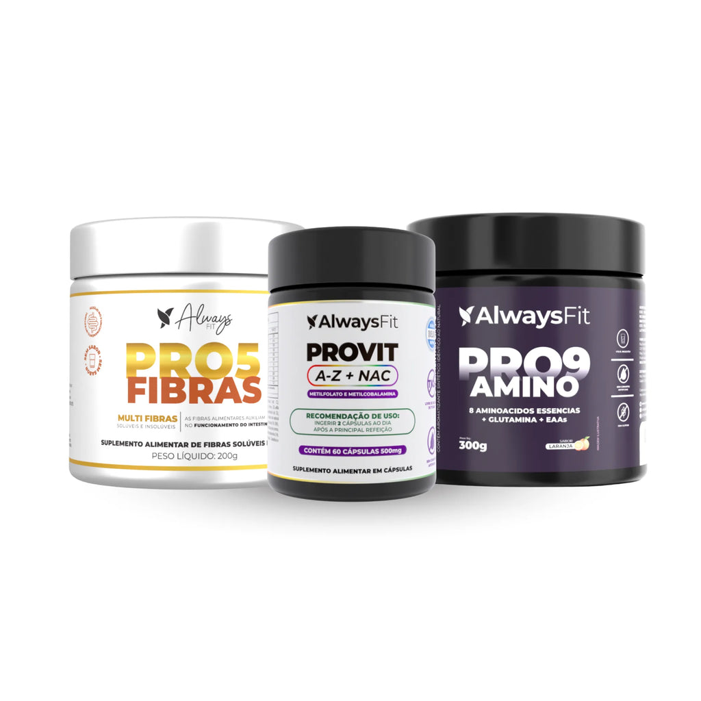 O Kit GLP-1 Always Fit foi criado para prevenir deficiências nutricionais, mantendo o corpo ativo, nutrido e equilibrado com suporte de aminoácidos, fibras e vitaminas completas.
