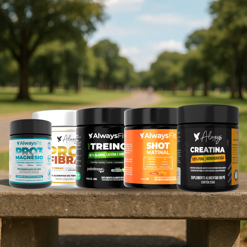 Cada suplemento cumpre uma função clara — juntos, formam um protocolo completo pro dia a dia.