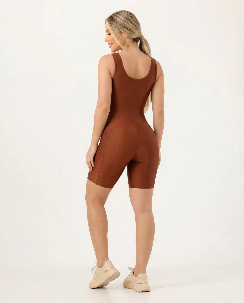 A compressão confortável proporciona suporte equilibrado e a modelagem anatômica acompanha as curvas com precisão, valorizando a silhueta e permitindo mobilidade completa.