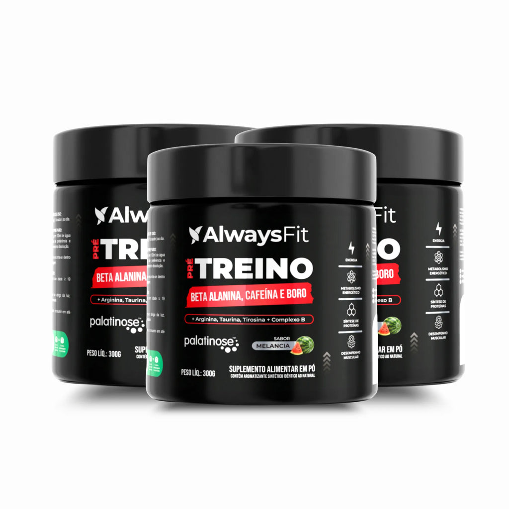 Agora com palatinose e adoçado com stévia, o Pré-Treino Always Fit oferece energia estável e gradual, sem açúcar, sem corantes e com o sabor natural da melancia.