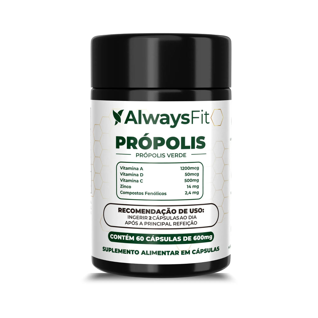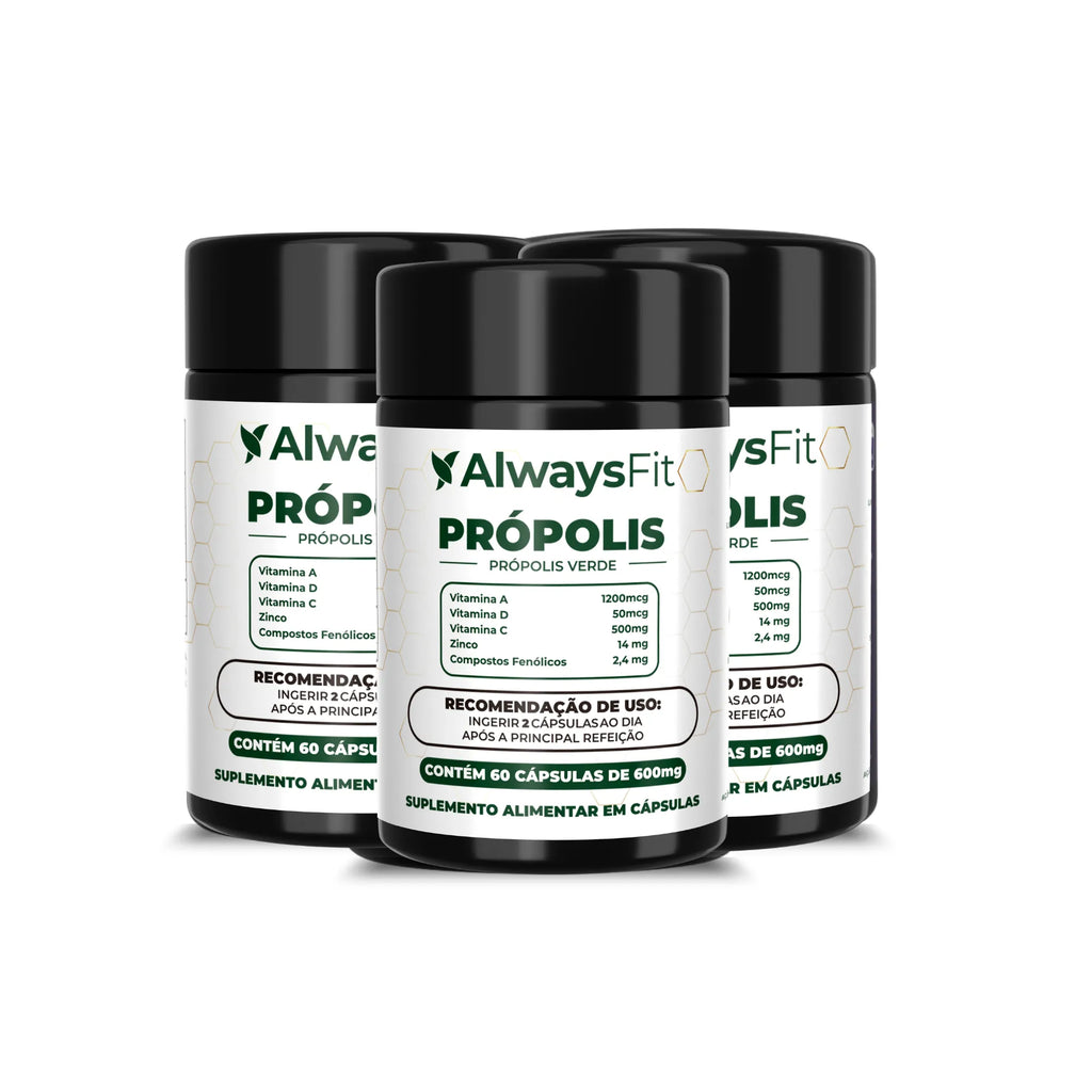 O Própolis Verde Always Fit é um suplemento alimentar em cápsulas que combina extrato de própolis verde com Vitaminas A, C, D3 e Zinco. Essa fórmula foi desenvolvida para oferecer suporte nutricional ao sistema imunológico e contribuir para a manutenção da saúde da pele, mucosas, ossos e visão.
